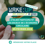12 février 2024, par Marie CIn4Green, le réseau des partenaires infogreen en action vous invite à participer à ce cinquième rendez-vous WakeUp le jeudi 29 février 2024 de 10h15 à 11h45 !
