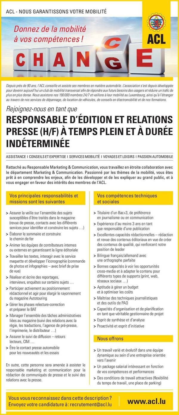Responsable d’édition et relations presse (h/f) à temps plein et à durée