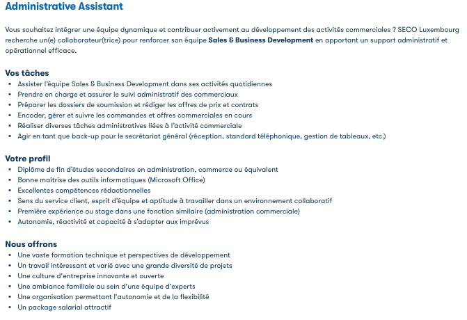 Administrative Assistant (M/F) Voir toutes les offres Seco recrute ! Lien pour postuler : cliquez ici