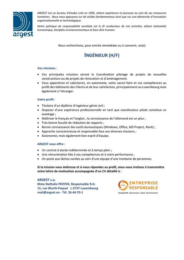 ARGEST S.A. recrute ! Voir toutes les offres Ingénieur (h/f) Plus d’informations : https://argest.lu/