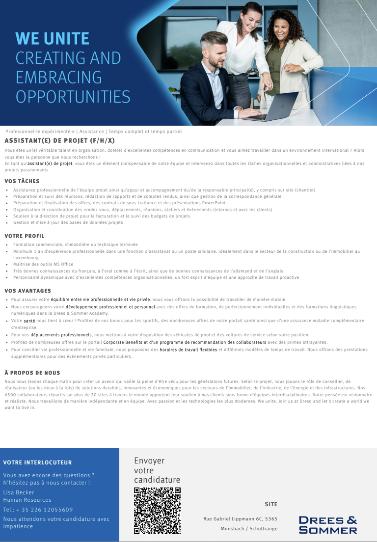 Assistant de projet (M/F) Voir toutes les offres Drees & Sommer recrute ! Lien pour postuler : cliquez ici