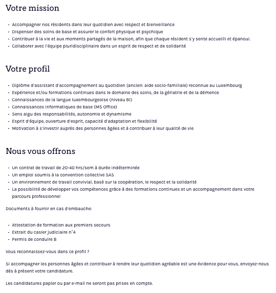 Assistants d’accompagnement au quotidien (M/F) Voir toutes les offres Elisabeth Luxembourg recrute ! Lien pour postuler : cliquez ici