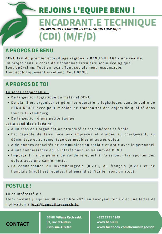 Encadrant technique (CDI) (m/f/) intervention technique d’exploitation logistique
