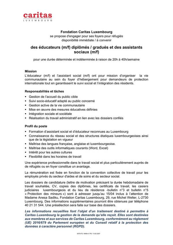Plus d’informations : https://www.caritas.lu/offres-demploi