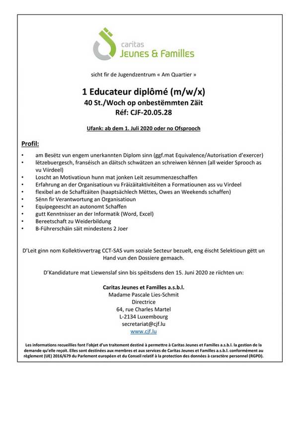 1 Éducateur diplômé (m/w/x) 40 St./Woche CDI