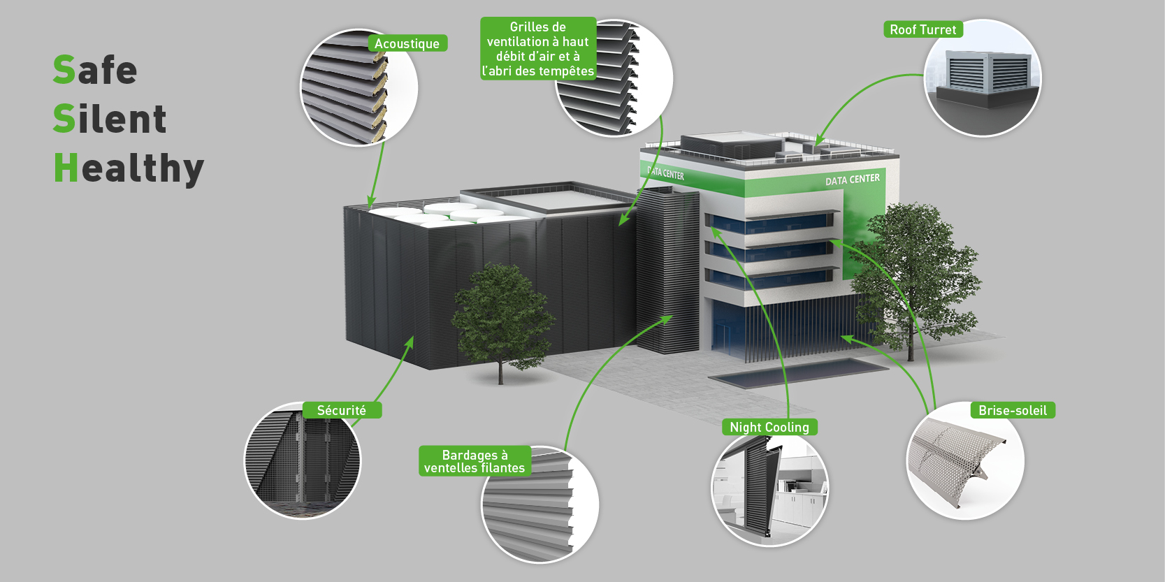 Les centres de données et les salles de serveurs nécessitent une approche particulière. Le bâtiment doit être bien ventilé en raison de l’accumulation de chaleur à l’intérieur, mais aussi protégé des regards indiscrets et des intrus.