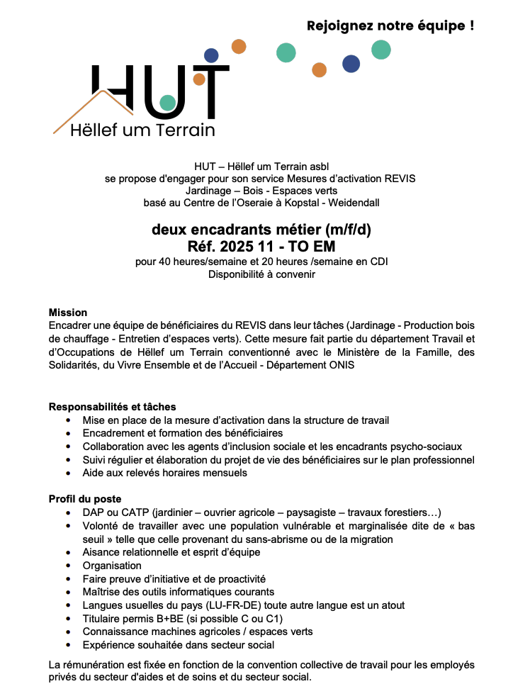 Deux encadrants métier (m/f) / HUT Voir toutes les offres HUT recrute ! Lien pour postuler : cliquez ici
