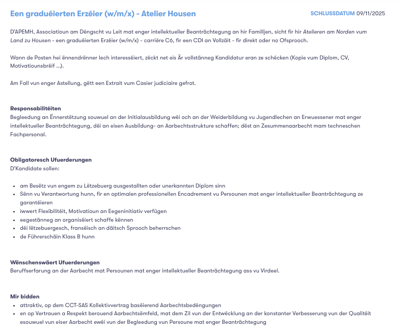 Een graduéierten Erzéier (m/f) / APEMH Voir toutes les offres APEMH recrute ! Lien pour postuler : cliquez ici
