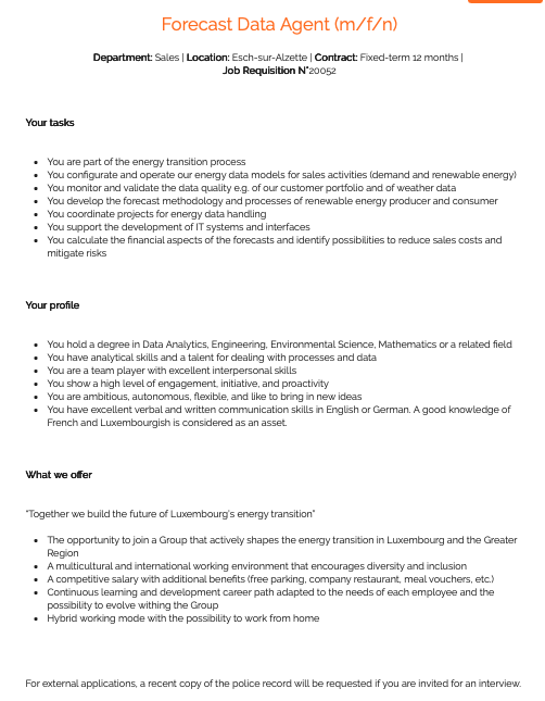 Forecast Data Agent (M/F) Voir toutes les offres Enovos Luxembourg is hiring ! Lien pour postuler : cliquez ici