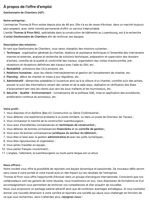 Gestionnaire de Chantiers - Chef de Projets (h/f) Voir toutes les offres Thomas & Piron recrute ! Lien pour postuler : cliquez ici