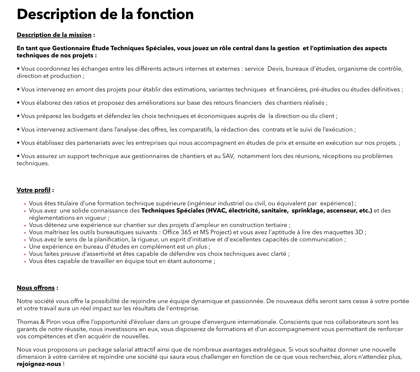 Gestionnaire Étude Techniques Spéciales (H/F) Voir toutes les offres Thomas & Piron recrute ! Lien pour postuler : cliquez ici