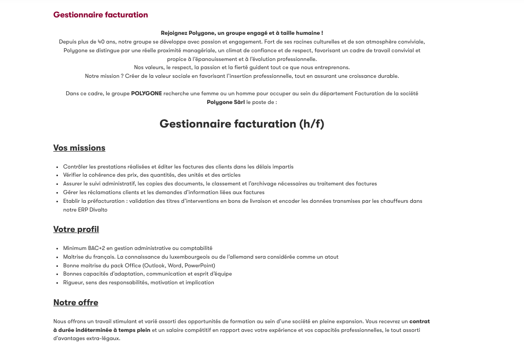 Gestionnaire facturation (m/f) / Polygone Voir toutes les offres Polygone recrute ! Lien pour postuler : cliquez ici