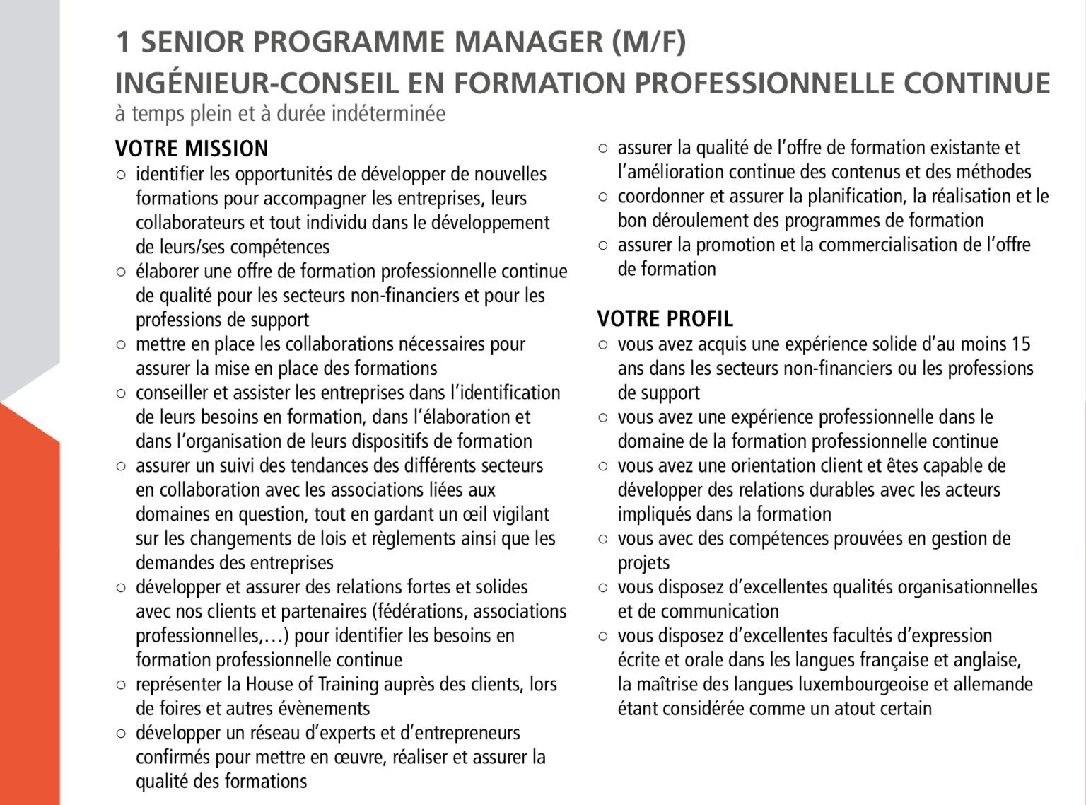 House of Training recrute ! Voir toutes les offres Senior Programme Manager, Ingénieur-Conseil en FPC (m/f)