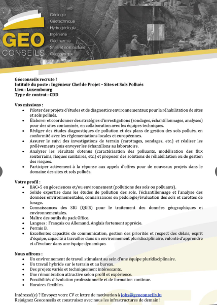 Ingénieur Chef de Projet (m/f) / Géoconseils Voir toutes les offres Géoconseils recrute ! Lien pour postuler : cliquez ici