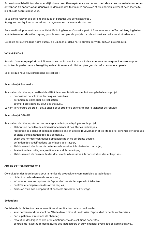 Ingénieur(e) en Etudes ; Conception Electrique (m/f) / Betic Voir toutes les offres Betic recrute ! Lien pour postuler : cliquez ici