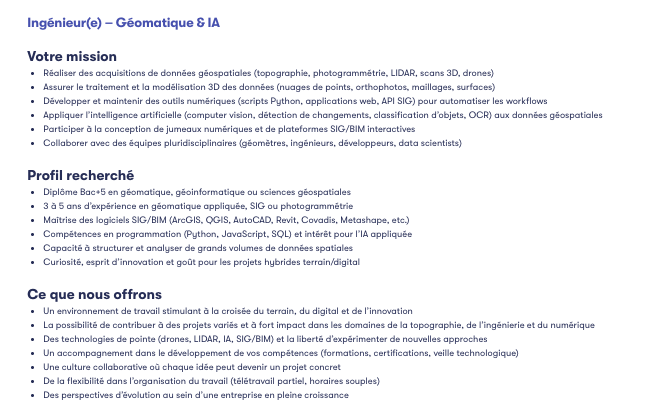 Ingénieur – Géomatique & IA (m/f) / Seco Voir toutes les offres Seco recrute ! Lien pour postuler : cliquez ici