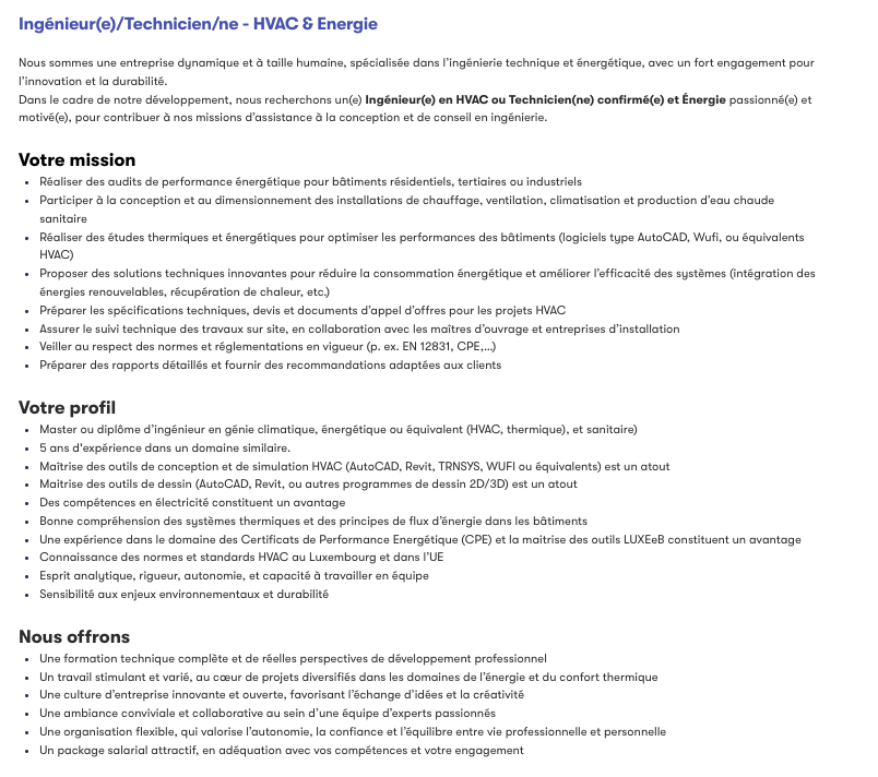 Ingénieur/Technicien - HVAC & Energie (m/f) / Seco Voir toutes les offres Seco recrute ! Lien pour postuler : cliquez ici