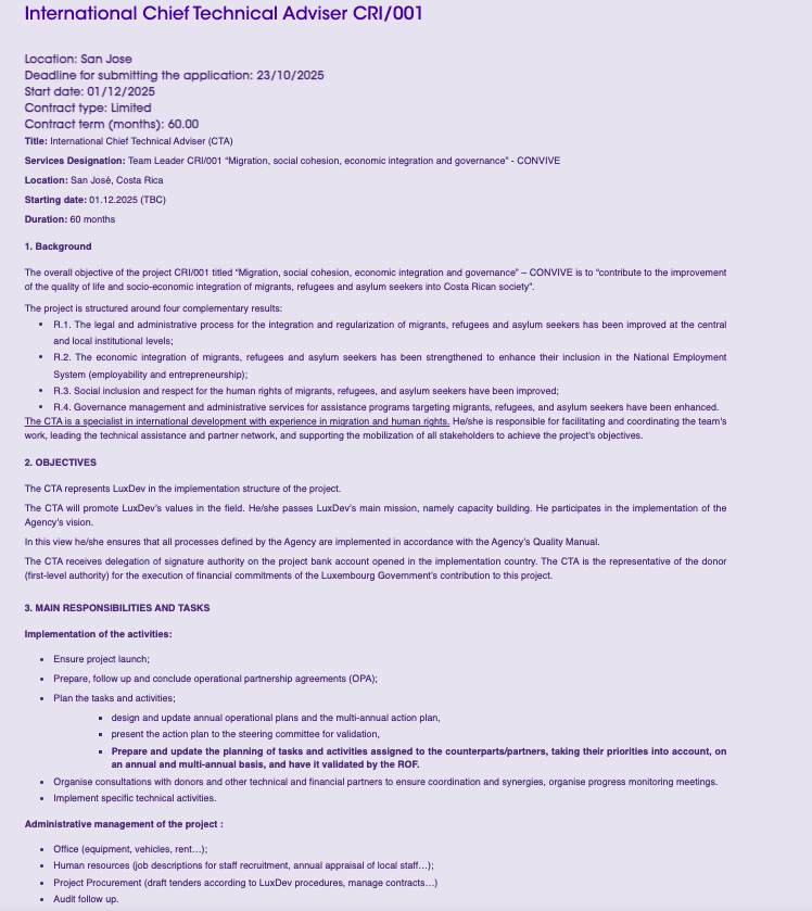 International Chief Technical Adviser (m/f) / LuxDev Voir toutes les offres LuxDev recrute ! Lien pour postuler : cliquez ici