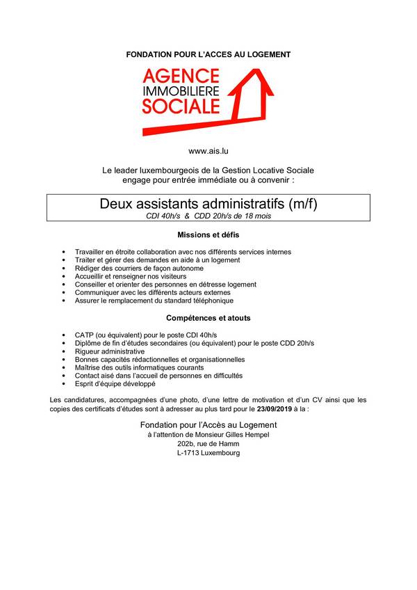 Deux assistants administratifs (m/f)