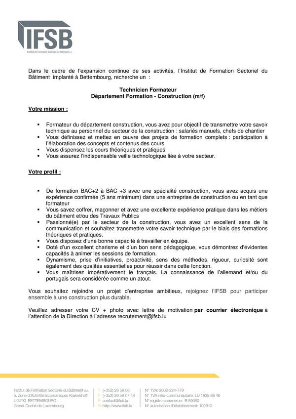 Plus d’informations : https://www.ifsb.lu/l-ifsb-recrute
