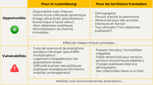Principales opportunités et vulnérabilités liées à l’existence du phénomène frontalier pour les territoire