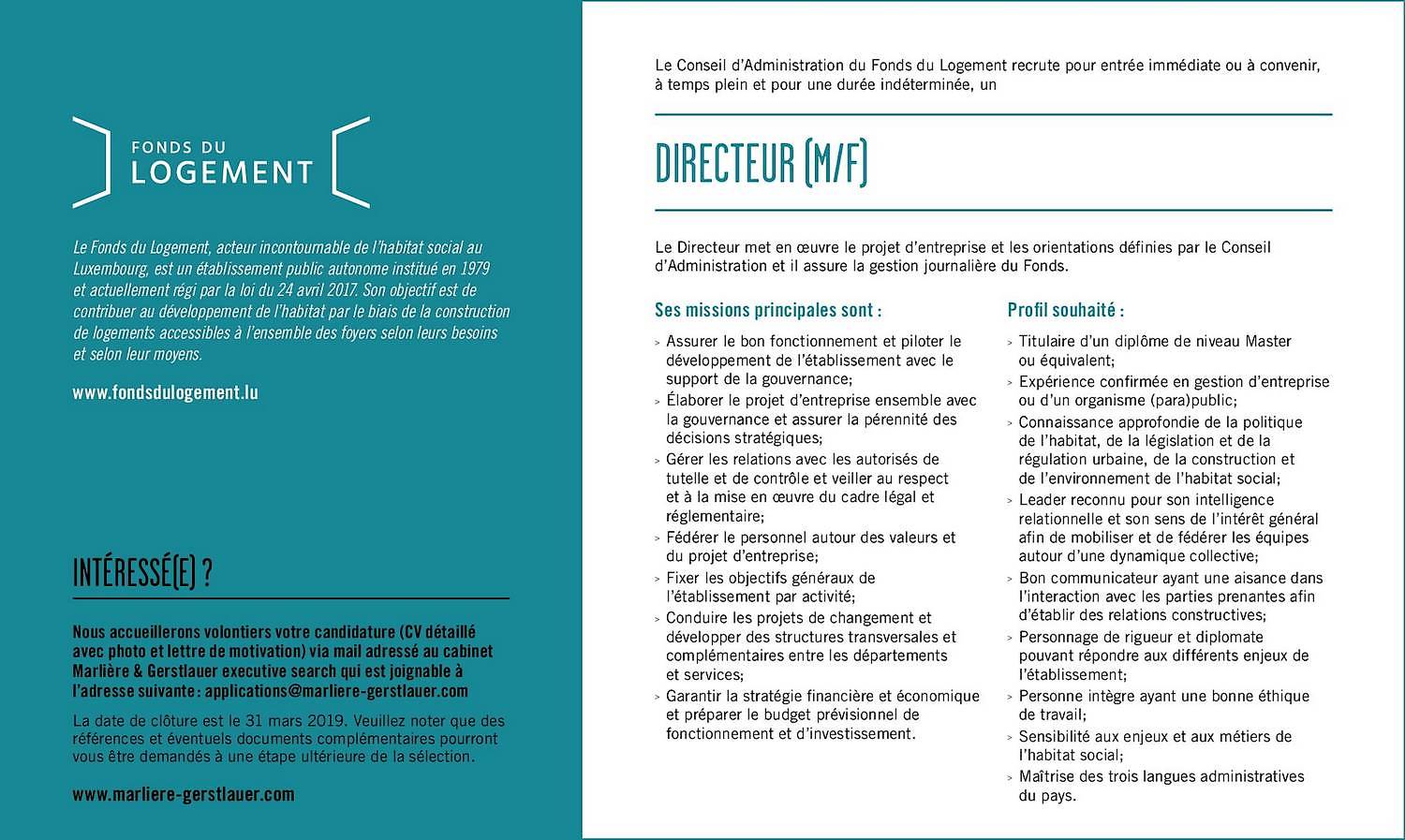 Le Fonds du Logement recrute ! Voir toutes les offres Un Directeur (m/f) Image by olilynch on Pixabay