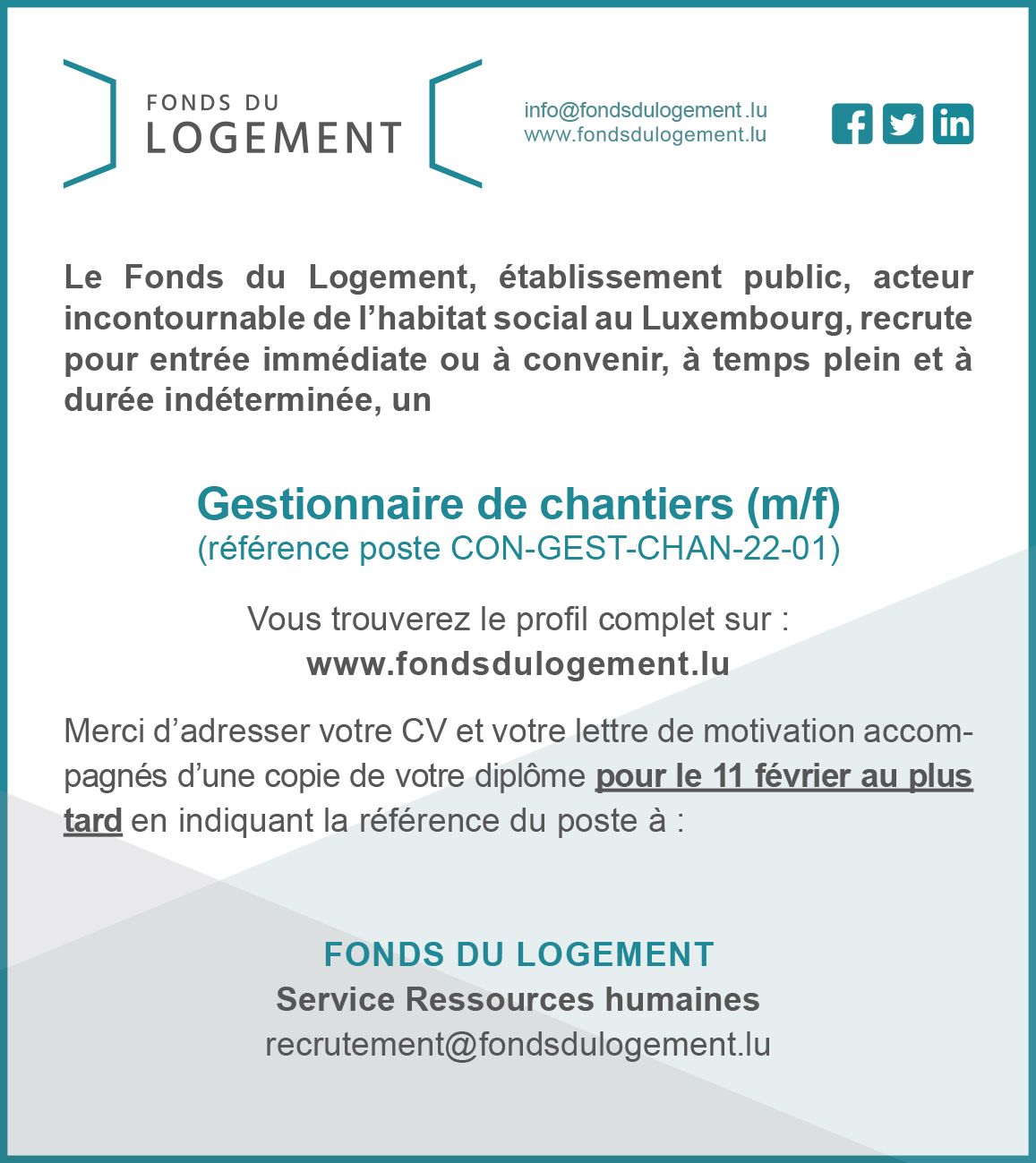 Le Fonds du Logement recrute !