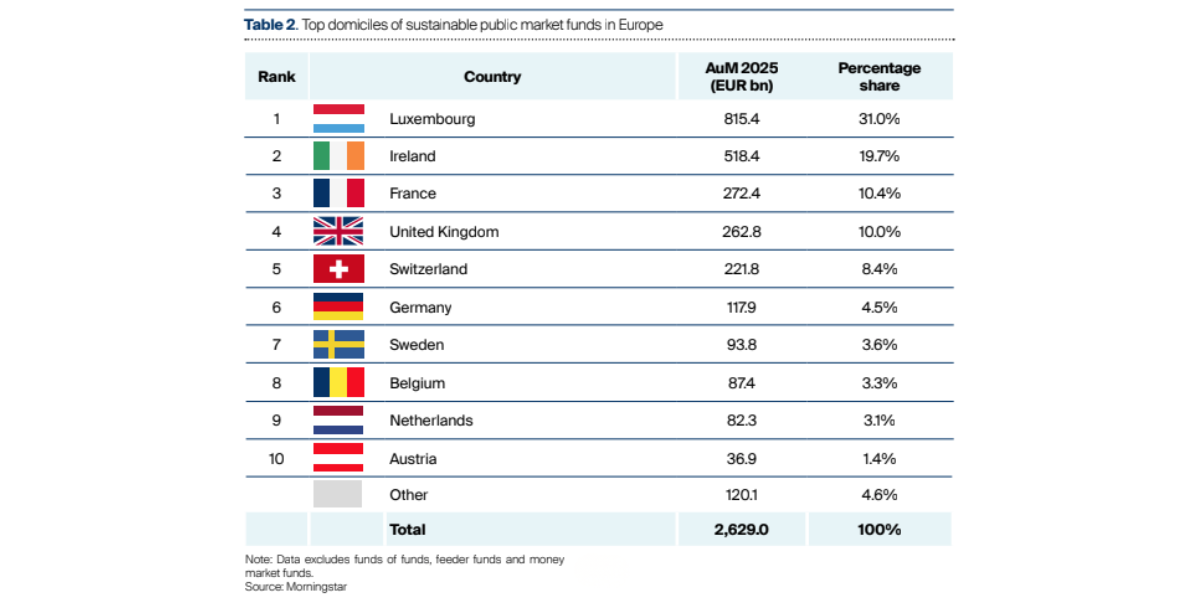 Le Grand-Duché confirme son rôle central dans le paysage européen. Il représente à lui seul 31 % des actifs des fonds durables du marché public en Europe, un positionnement unique.