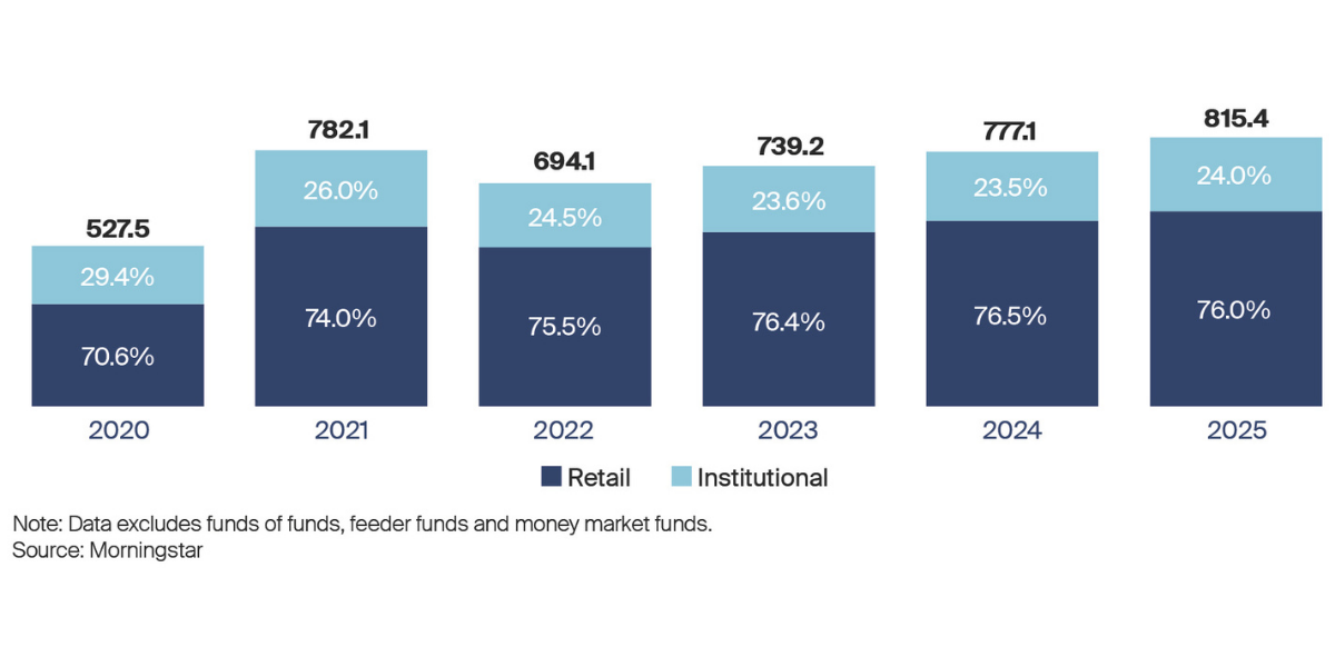À l’échelle européenne, la dynamique est également forte. Les fonds durables représentent désormais 15,8 % des actifs sous gestion (montants investis dans les fonds durables), soit 2,6 billions d’euros. Un chiffre encore minoritaire, mais en progression constante, qui montre que la durabilité s’installe progressivement dans le cœur du marché.