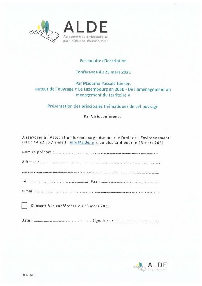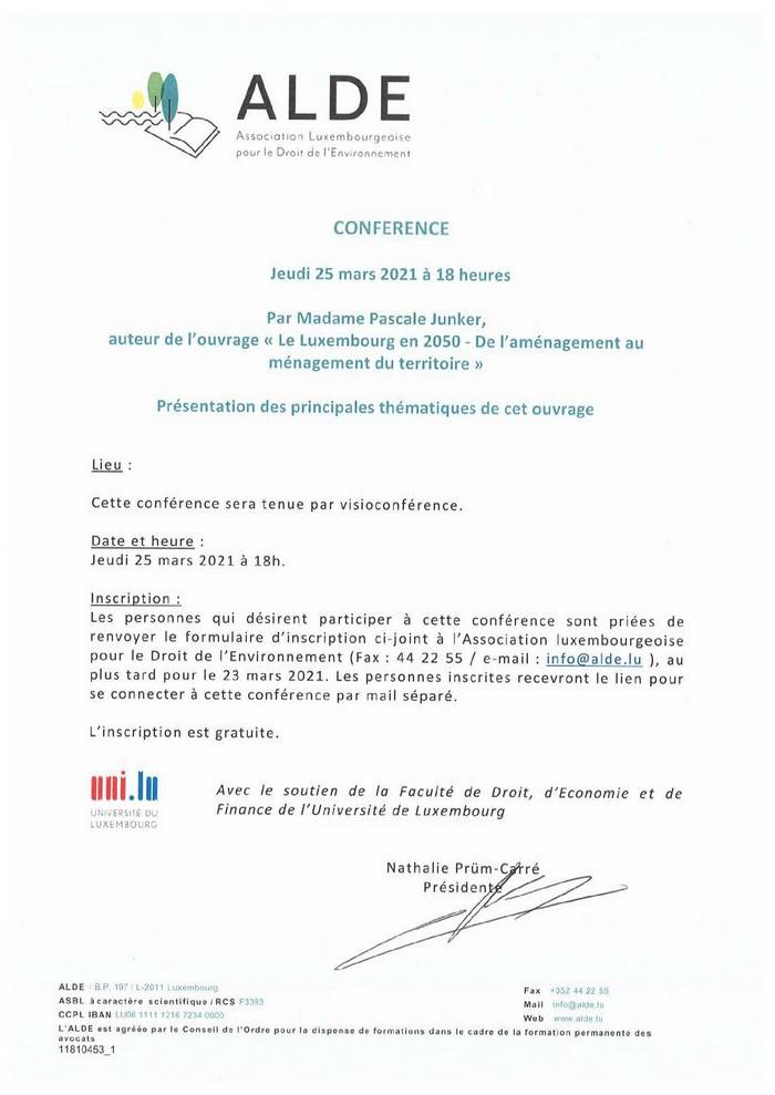 25/03/2021 « Le Luxembourg en 2050 – De l’aménagement au ménagement du territoire » Jeudi, 25 mars 2021, à 18:00 heures, par vidéoconférence