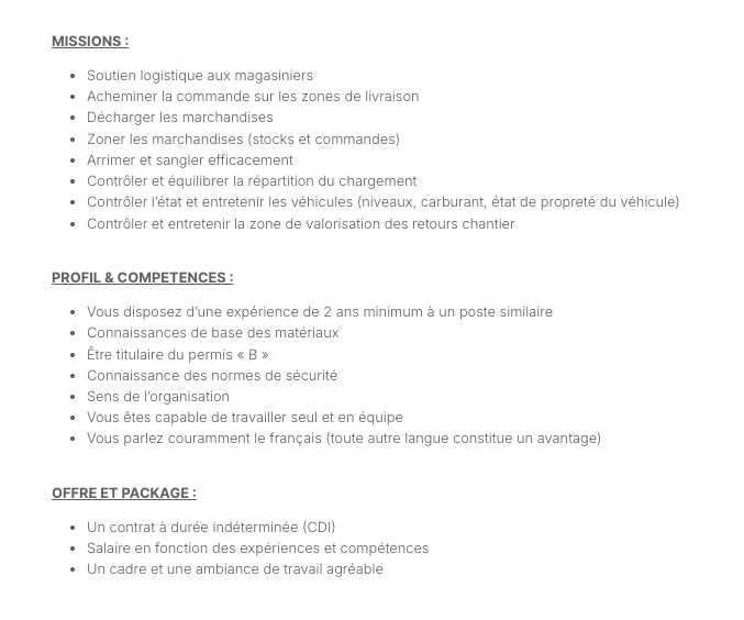 Magasinier / Livreur (M/F) Voir toutes les offres Marques Confort recrute ! Lien pour postuler : cliquez ici
