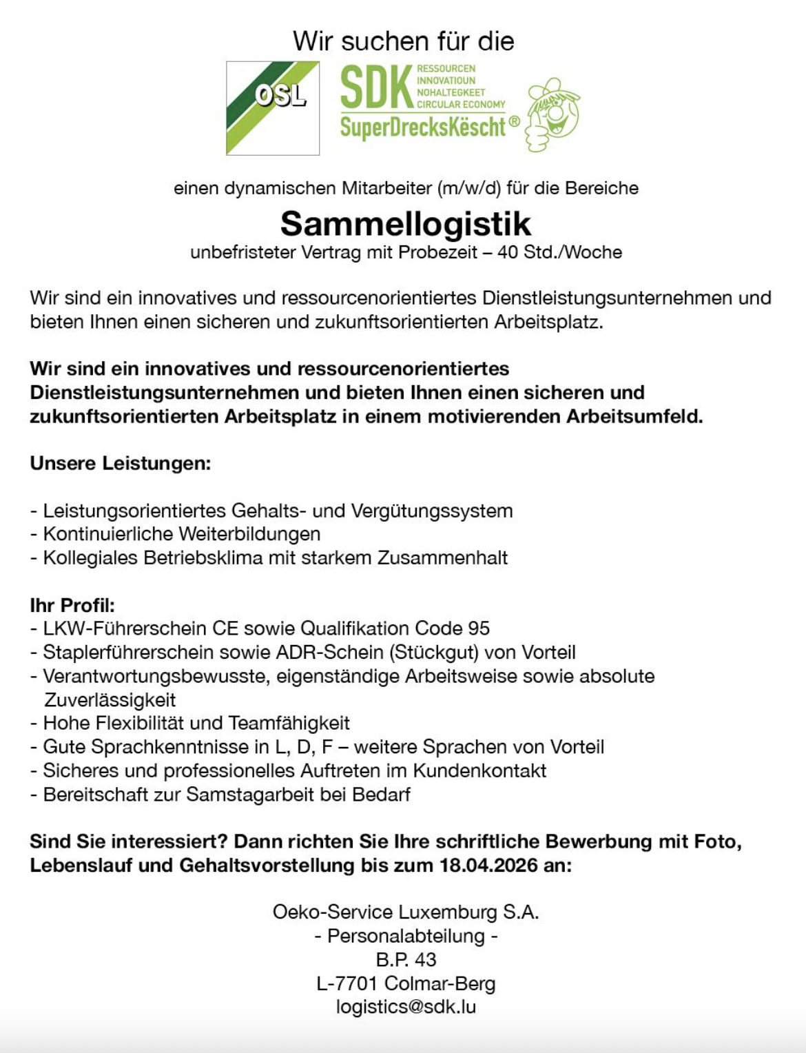 Matabeschter (M/F) Voir toutes les offres SuperDrecksKëscht recrute ! Lien pour postuler : cliquez ici