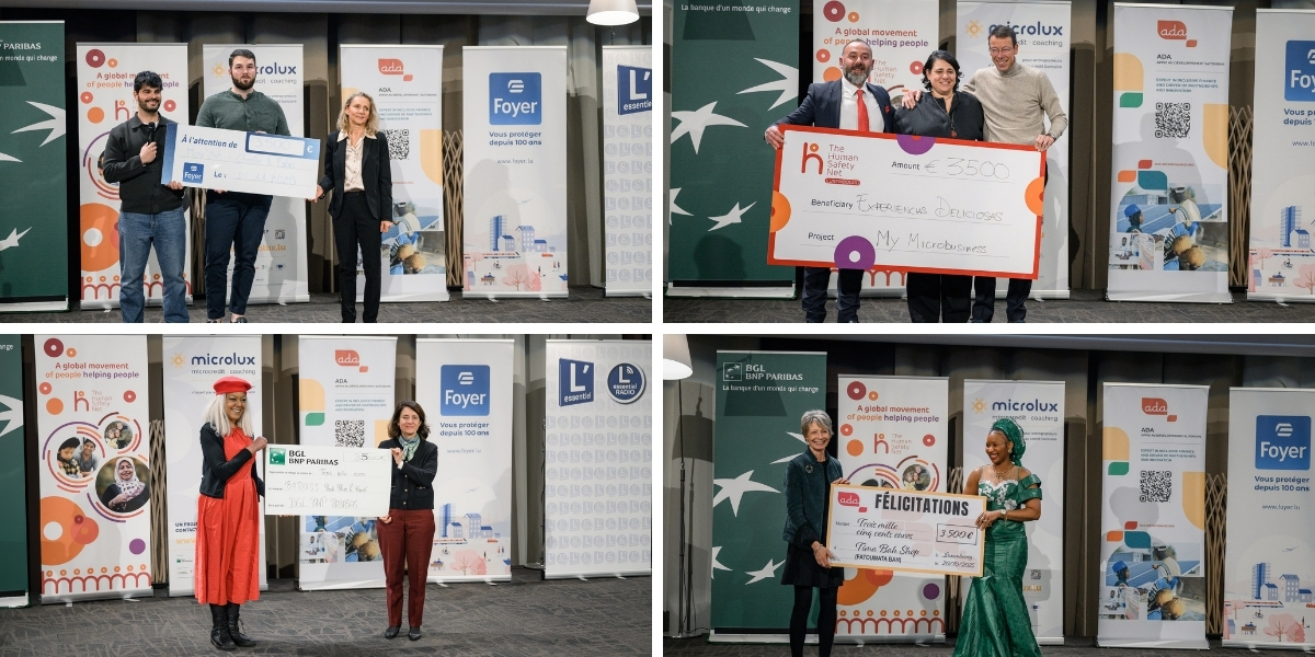 Invités sur scène, les lauréats ont partagé avec émotion leur parcours entrepreneurial. Choisis par les partenaires du concours, BGL BNP Paribas, Foyer, la fondation The Human Safety Net, ADA (Appui au Développement Autonome) parmi 19 projets pré-sélectionnés par microlux, ils ont chacun reçu un prix de 3.500 euros, destiné à soutenir le développement de leur activité.