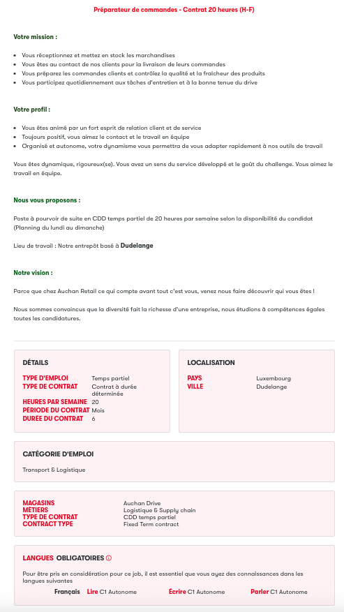 Préparateur de commandes - Contrat 20 heures (M/F) Voir toutes les offres Auchan recrute ! Lien pour postuler : cliquez ici