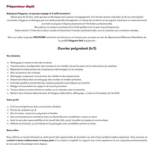 Préparateur dépôt (m/f) / Polygone Voir toutes les offres Polygone recrute ! Lien pour postuler : cliquez ici