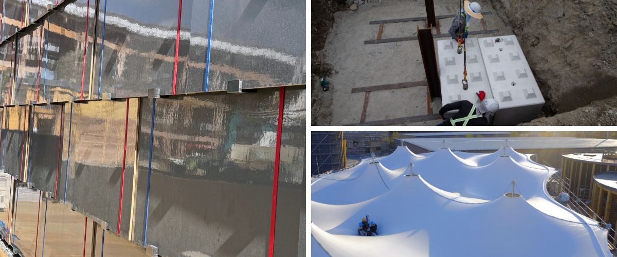 La conception des structures, des fondations et de la membrane a été réalisée par le bureau d’ingénieur Ney & Partners T6.