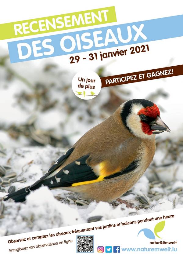 Cette année, natur&ëmwelt vous invite pour la 16e fois à participer au recensement des oiseaux. En 2020, l’action nationale aura lieu le 29, 30 et 31 janvier. Participez et gagnez !
