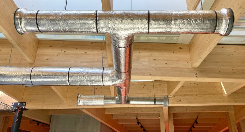 V.d. Graaf a commencé à travailler avec le produit ROCKWOOL 133 : un matelas isolant composé de bandes de laine de roche à fibres orientées verticalement, collées sur une feuille d’aluminium renforcée de fibres de verre. « Le 133 est un très bon produit pour l’isolation thermique et acoustique des gaines de ventilation extérieures. Nous avons commencé avec ce produit, mais nous sommes très vite passés à la dernière innovation : ROCKWOOL LM Klima. Le matelas à lamelles LM Klima s’est avéré être une évolution logique, non seulement en termes de qualité mais aussi en termes de facilité d’installation. »