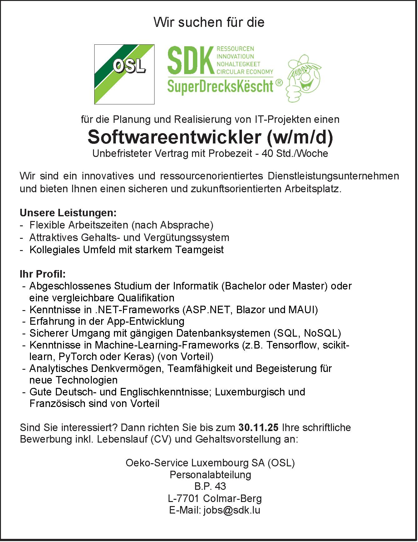 Softwareentwickler (w/m/d) / SuperDrecksKëscht