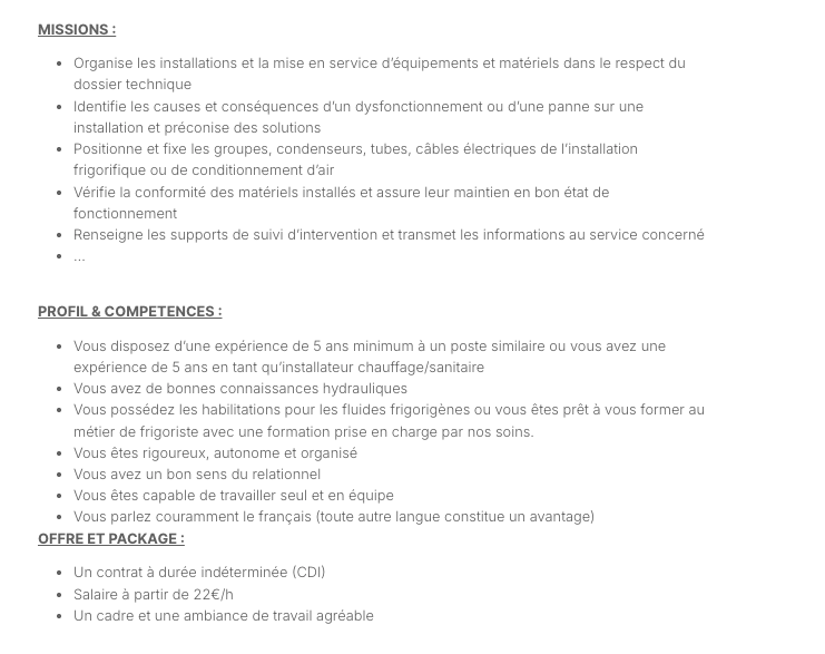 Technicien Froid & Climatisation (M/F) Voir toutes les offres Marques Confort recrute ! Lien pour postuler : cliquez ici