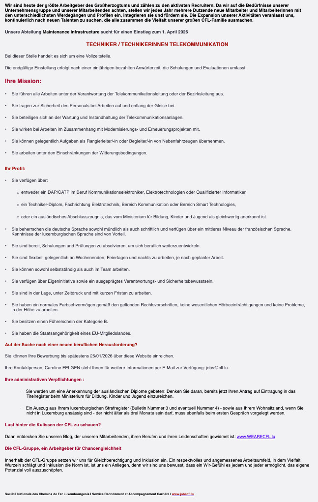 Unsere Abteilung Maintenance Infrastructure sucht für einen Einstieg zum 1. April 2026