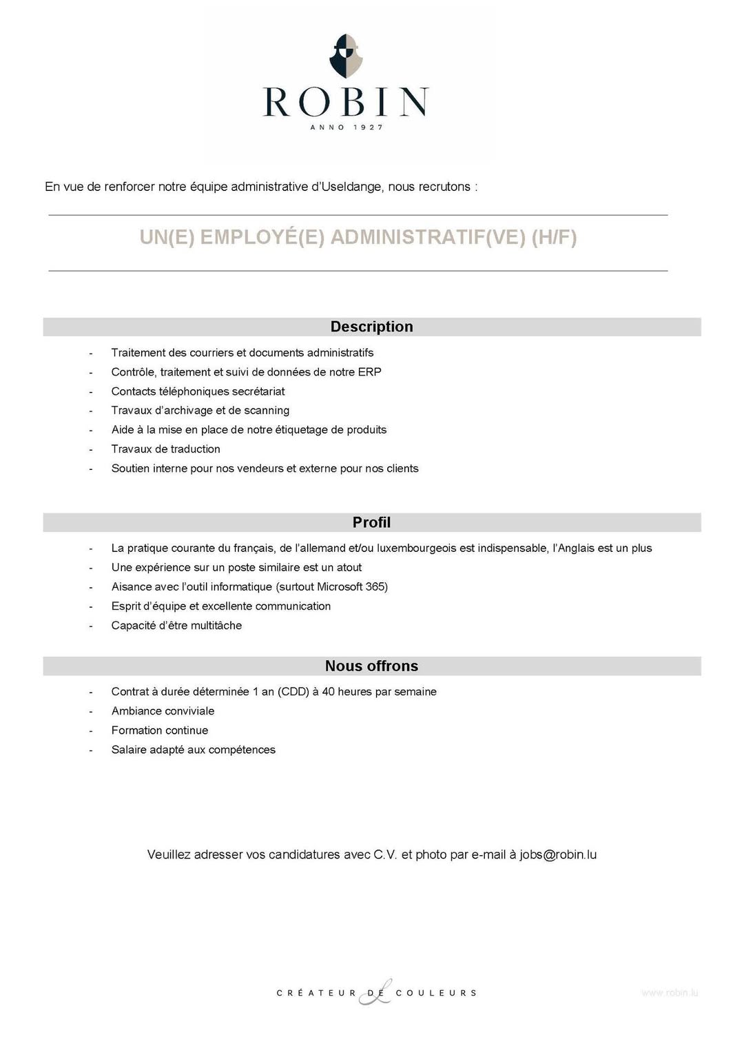 Un employé Administratif (h/f) Voir toutes les offres Peintures ROBIN S.A. recrute ! Lien pour postuler : cliquez ici