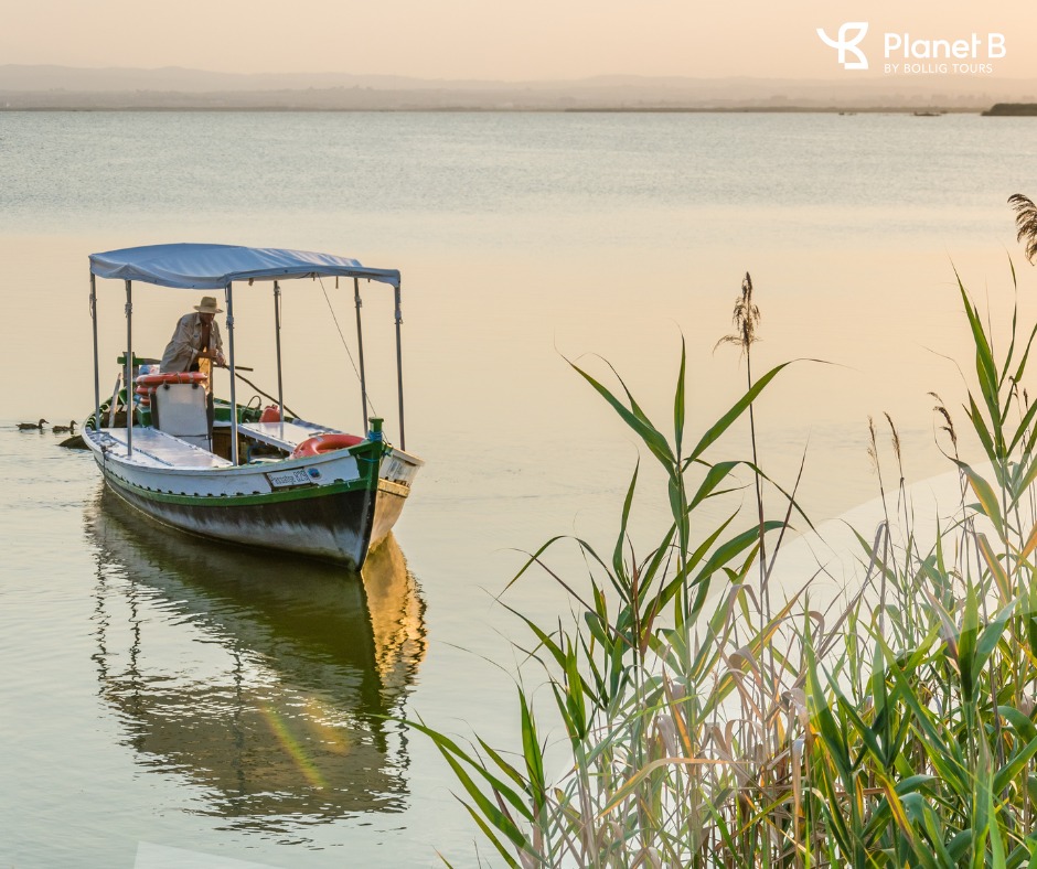 Natur & Genuss – Eine Bootsfahrt im Naturpark Albufera, Einblicke in den Reisanbau und eine traditionelle Paella verbinden Landschaft und Kulinarik.